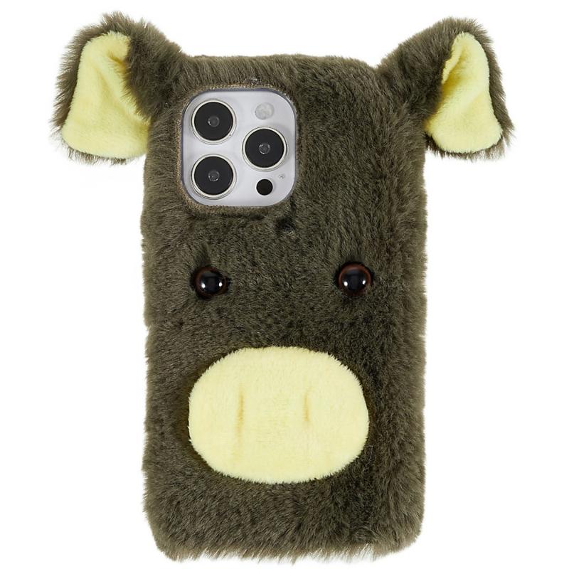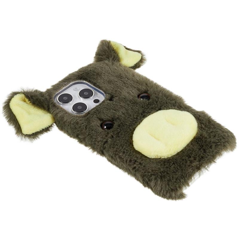 For iPhone 14 Pro Soft Plush Phone Case Cute Cartoon Pig Design TPU Protective Back Cover