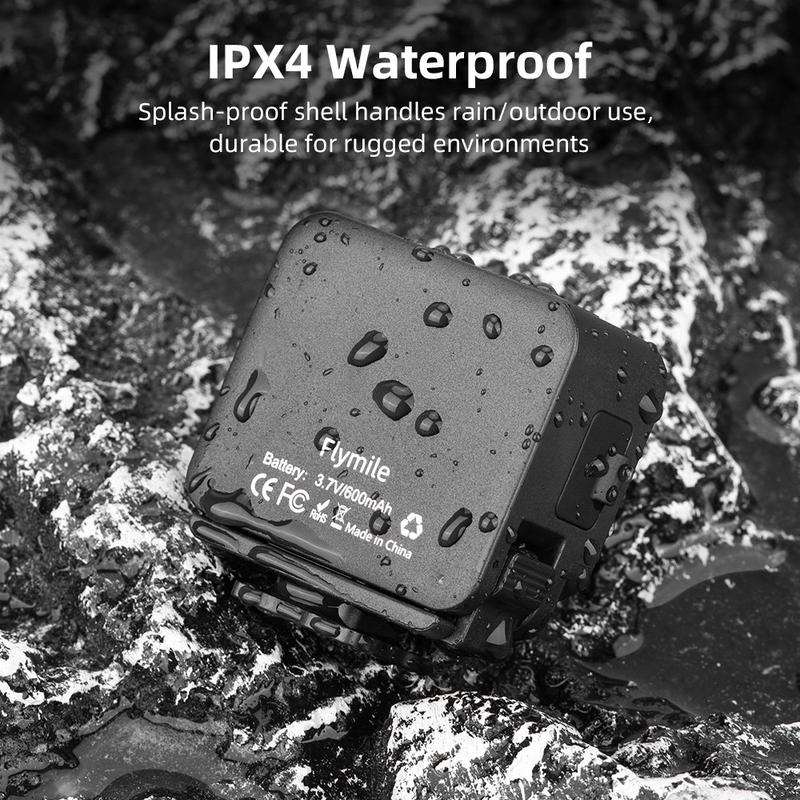 - Spritzwassergeschütztes Design nach IPX4 für Aufnahmen bei leichtem Regen und im Freien