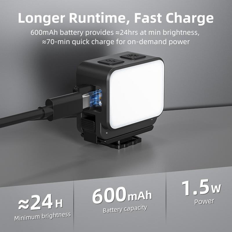 Ein kleines Licht kann einen großen Unterschied in der Videoqualität bewirken. Dieses Fülllicht ist leicht zu transportieren, schnell zu montieren und flexibel genug für kreative Menschen, die ohne sperrige Ausrüstung bessere Ergebnisse erzielen möchten. Die Kombination aus magnetischer Bequemlichkeit, spritzwassergeschütztem Schutz und einstellbarer Farbtemperatur macht es zu einer zuverlässigen Aufrüstung für Actionkameras und DJI Osmo Pocket 3-Aufnahmen.