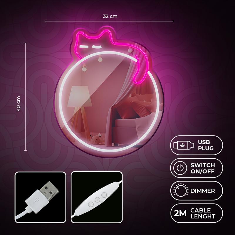 Verschönern Sie Ihr Interieur mit dem Neon MIRROR LED, einer perfekten Mischung aus Umgebungsbeleuchtung und einem praktischen Spiegel, der von einem stilvollen Neonrahmen umgeben ist. Die LED-Beleuchtung schafft eine gemütliche und entspannende Atmosphäre und eignet sich daher sowohl für die Dekoration als auch für den täglichen Gebrauch. Dank seiner vielseitigen Einsatzmöglichkeiten ist er sowohl in Dienstleistungssalons als auch in Wohnräumen ein Blickfang.