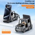 Revolutionieren Sie Ihren Arbeitsbereich mit dem G63 Car-Shaped Wireless Charger. Dieses multifunktionale Gerät mit 15W kabelloser Schnellladung versorgt Ihr Smartphone, Ihre Smartwatch und Ihre Kopfhörer gleichzeitig mit Strom. Der integrierte Bluetooth-Lautsprecher liefert hochwertigen Sound, während die integrierte Uhr mit Weckfunktion Ihnen hilft, den Zeitplan einzuhalten. Mit seinem einzigartigen Autodesign und der Umgebungsbeleuchtung verleiht es Ihrem Schreibtisch oder Nachttisch einen modernen Touch.