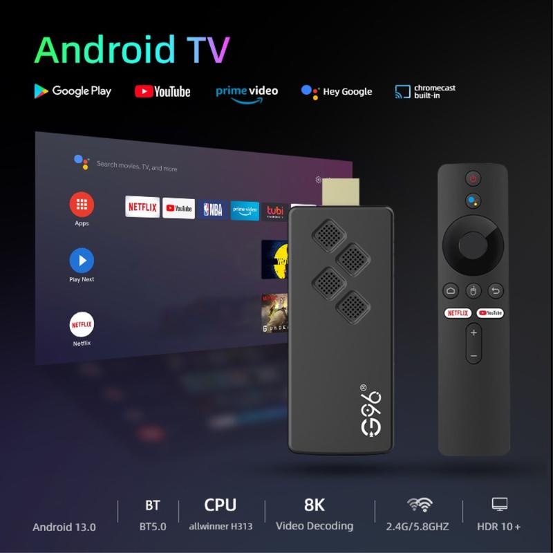 G96 ATV 8K Android 13 TV Stick mit Sprachfernbedienung - Dual-Band WiFi, Bluetooth, DLNA, Miracast, AirPlay - 2GB/16GB
