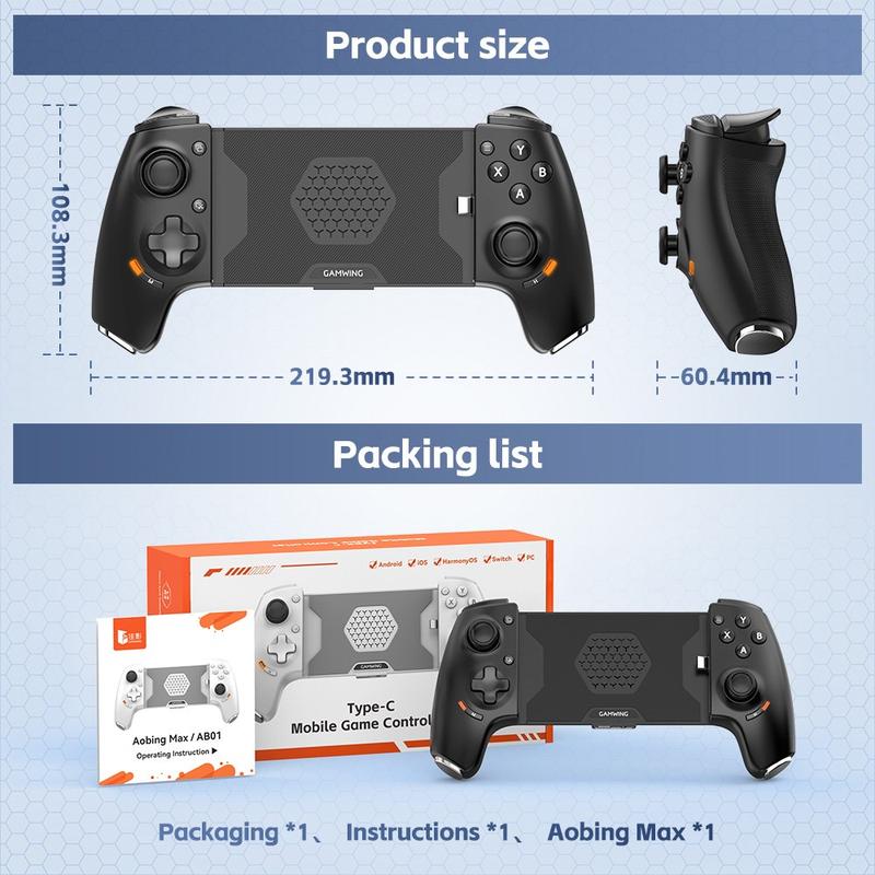 • Gamwing Aobing Max Dual-Mode Mobile Game Controller mit Bluetooth und USB-C Anschluss