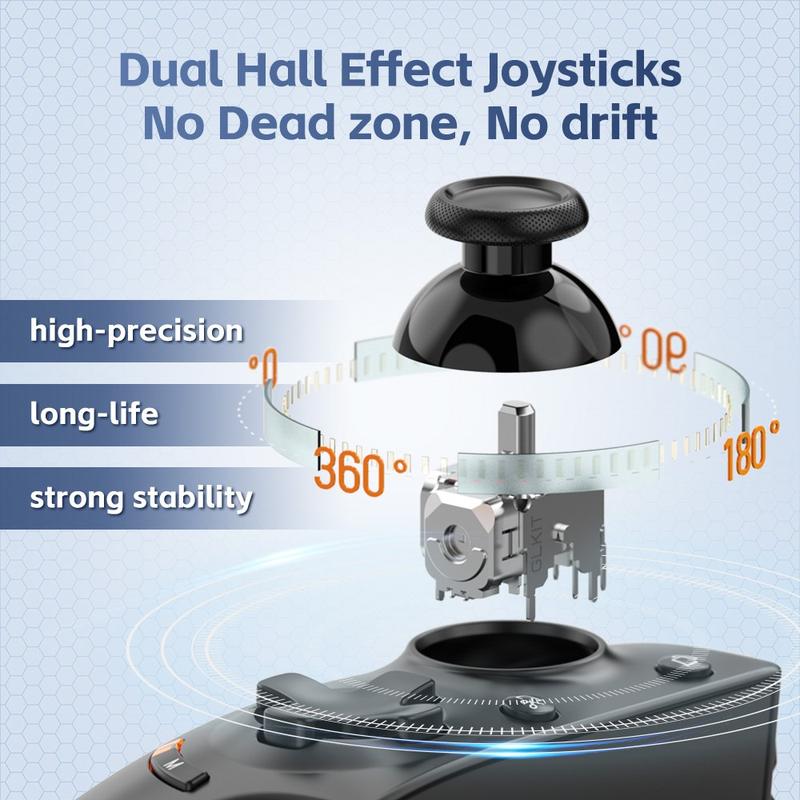 - Hall-Effekt-Joysticks und Dual-Mode-Hall-Trigger eliminieren Drift und bieten lineare oder Quick-Fire-Reaktion
