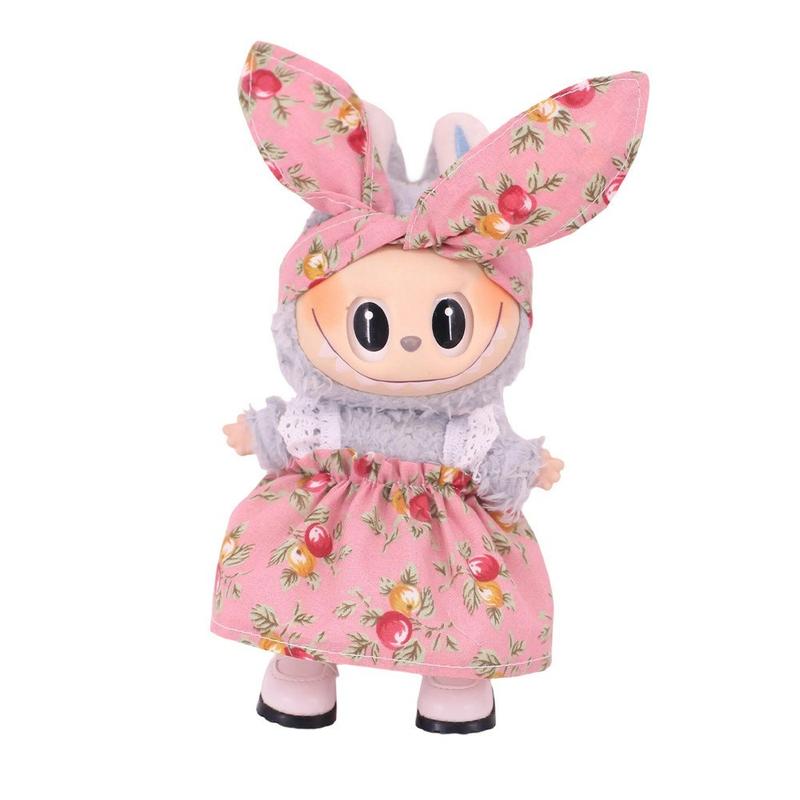 Garten-Party Kleid & Stirnband Set für Labubu Mini Figur 17cm - Pink