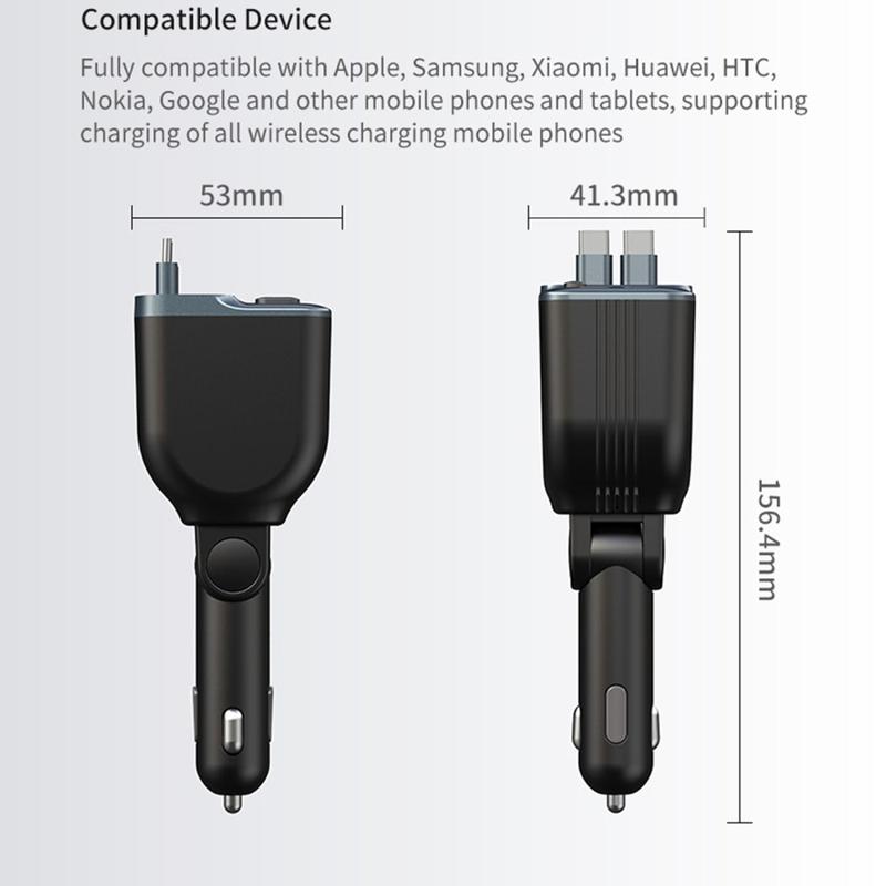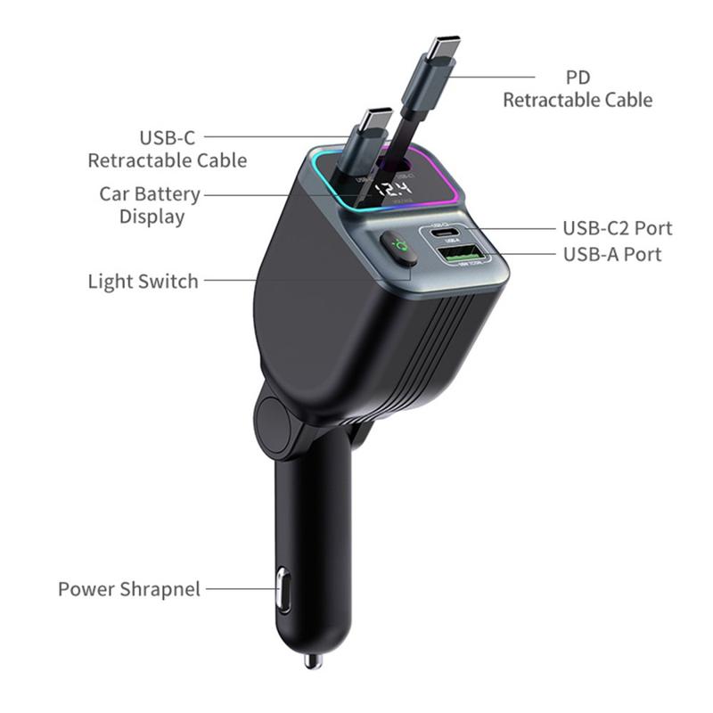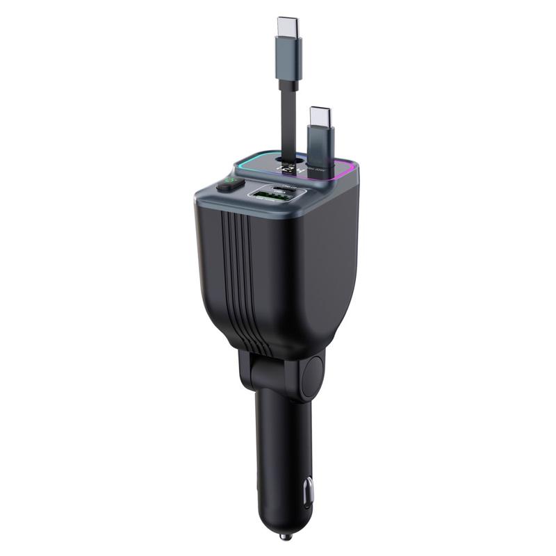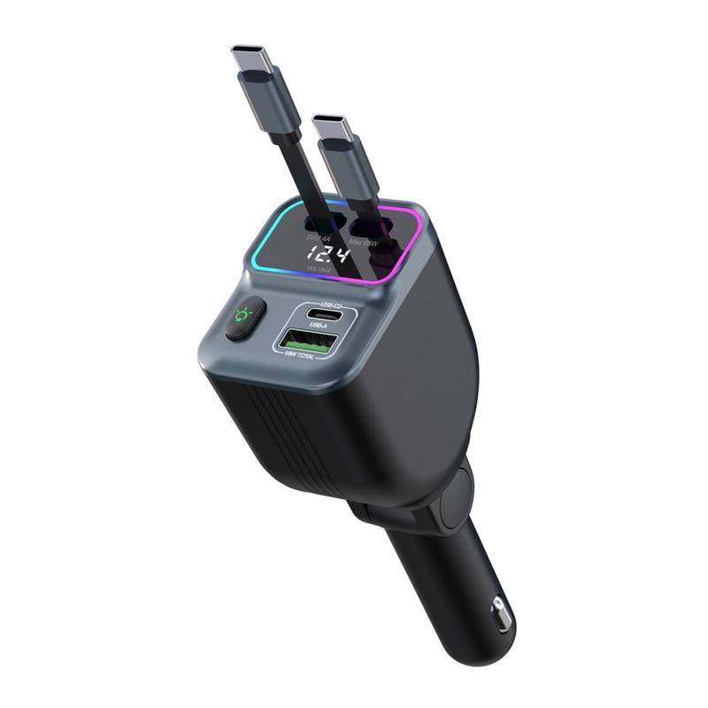 GC15 83W Autoladegerät mit Echtzeit-Spannungsüberwachung und einziehbaren USB-C-Kabeln