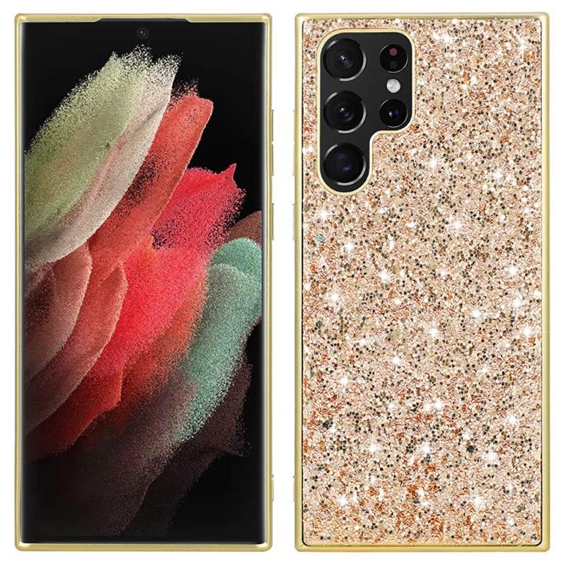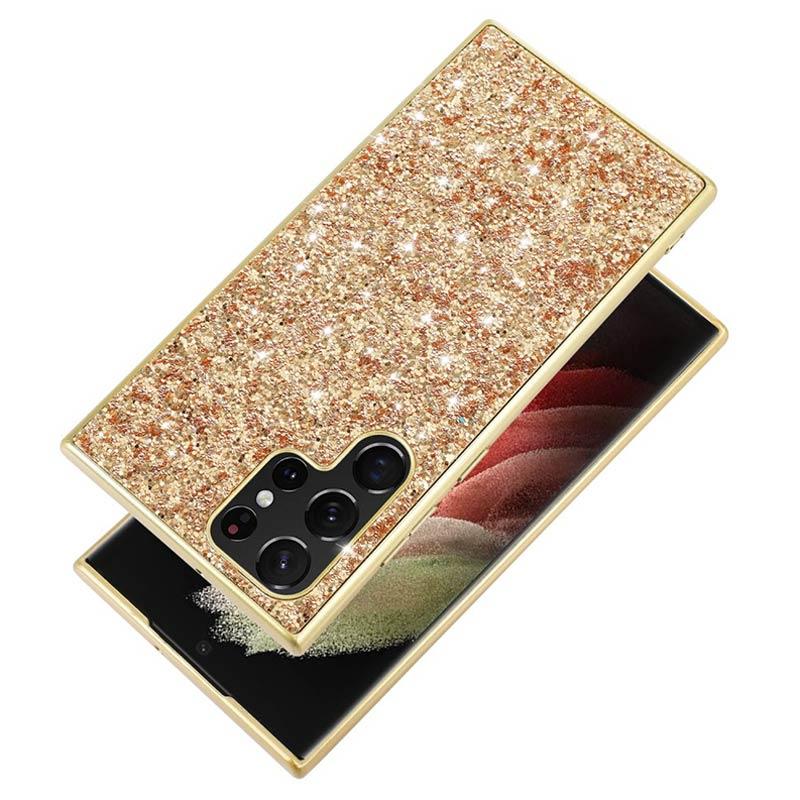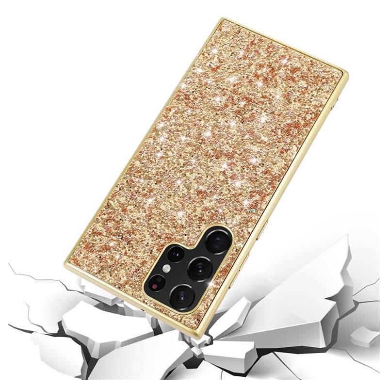 Glitter Serie Samsung Galaxy S23 Ultra 5G Hybrid Hülle - Gold