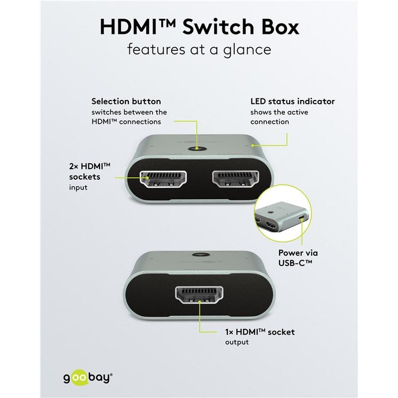 Goobay HDMI-Umschalter 2-zu-1 - 8K@60Hz HDMI-Umschalter für 2 Geräte an 1 Fernseher oder Monitor