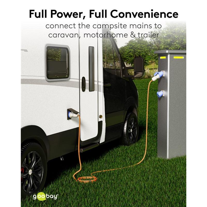 - Unverzichtbares Camping-Zubehör: Schließen Sie Ihr Wohnmobil, Ihren Wohnwagen oder Ihr Anhängerzelt nahtlos an das Stromnetz des Campingplatzes an.