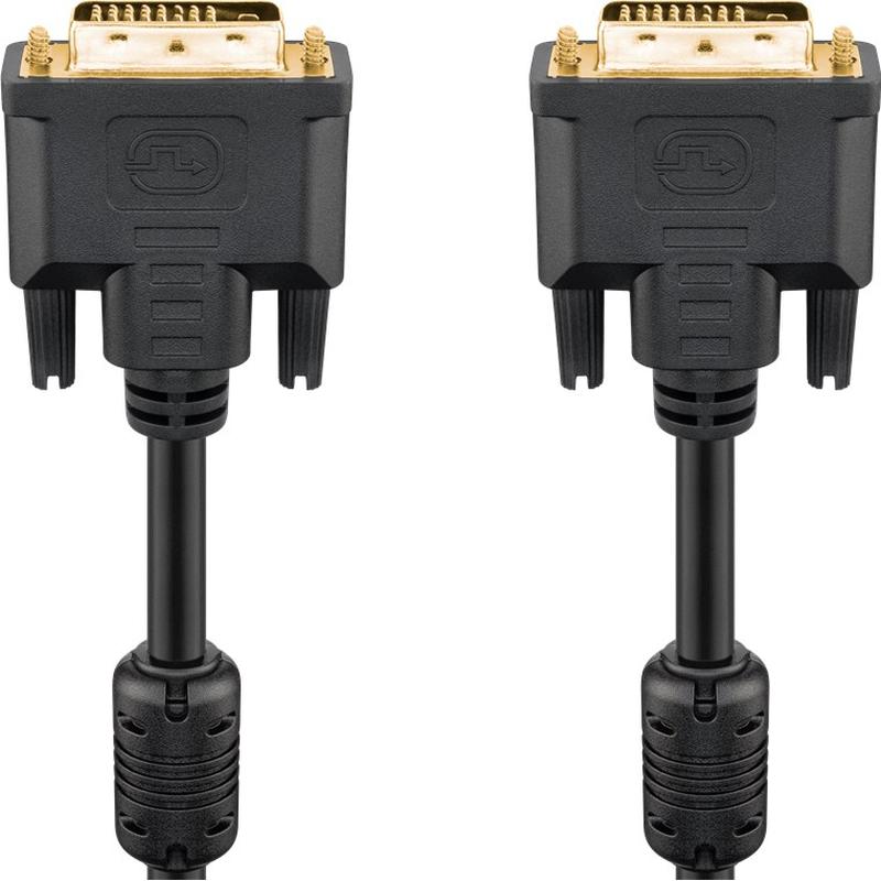Goobay DVI-D-kabel med Dual Link (24 + 1 stift) för digital bildöverföring från PC till enheter som bildskärm eller projektor. Högupplöst bildskärmkabel stöder Full HD 1080p (1920 x 1080 pixlar) och upplösningar upp till WQXGA (2560 x 1600 pixlar), Guldpläterade, korrosionsbeständiga DVI-D-kontakter garanterar utmärkt ledningsförmåga under många år. Ferritkärnor på båda kabeländarna minskar effektivt elektromagnetiska störningar. DVI-kabeln med längden 10 m är perfekt för att överbrygga stora avstånd.