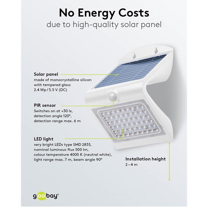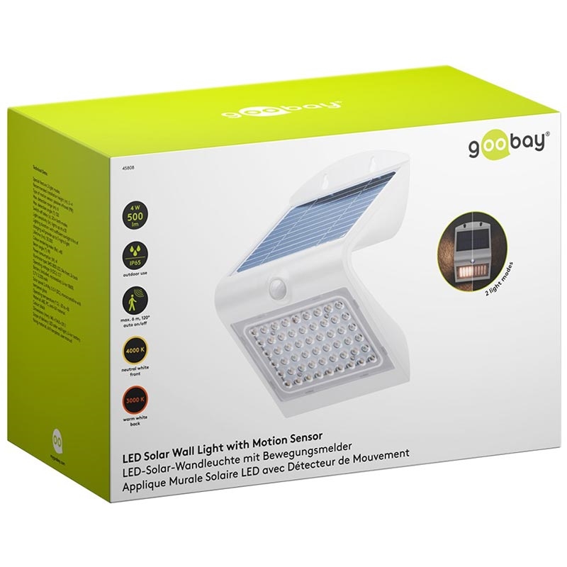 Goobay LED-Solar-Wandleuchte 4W mit PIR-Bewegungssensor - IP65 wasserdichte Solarlampe für den Außenbereich (500 lm, 4000K) - austauschbare Batterie