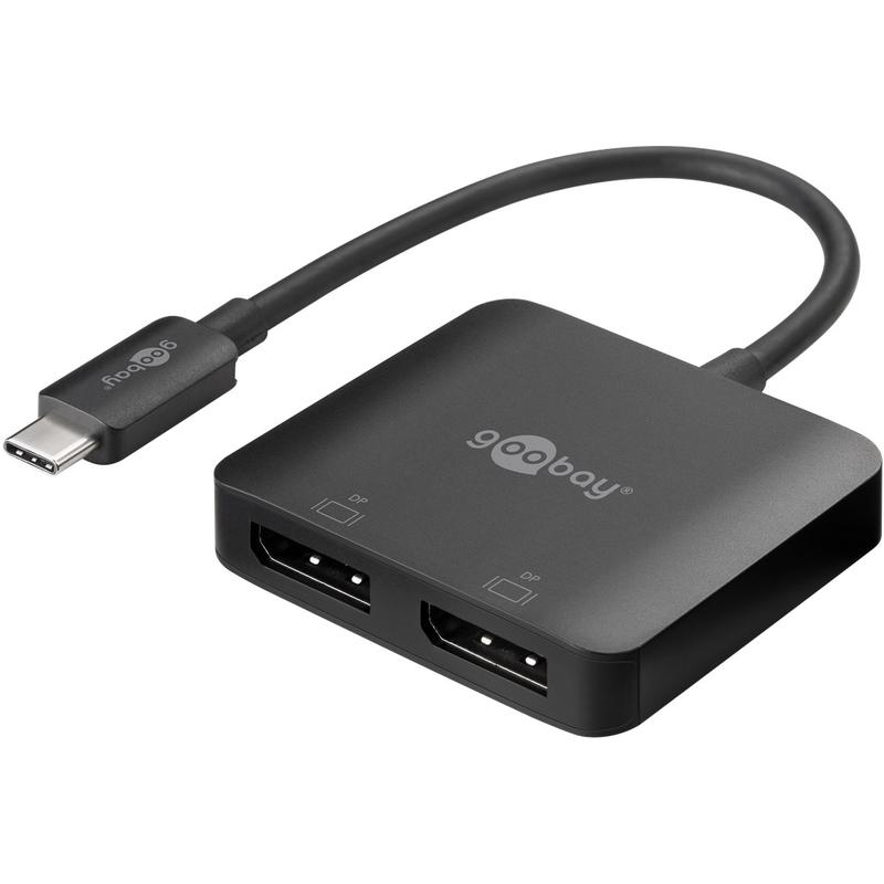 Adapter för flera monitorer för att spegla ljud- och videosignaler från USB-C™ till upp till 2 DisplayPort-portar, Möjliggör t. ex. synkronisering av upp till 2 skärmar samtidigt via DisplayPort, Lämplig för värddatorer med USB-C™-kontakt, När båda portarna används tillåter hubben en maximal skärmupplösning på 4K @ 60 Hz, med endast en port till och med 8K @ 30 Hz. Tack vare Plug & Play kan splittern användas utan att installera drivrutiner. Stödjer HDR (High Dynamic Range) för bilder med hög kontrast samt HDCP 1.4 och 2.2 för skyddad signalöverföring