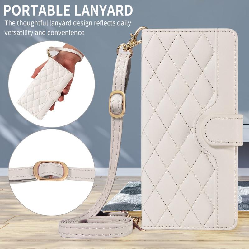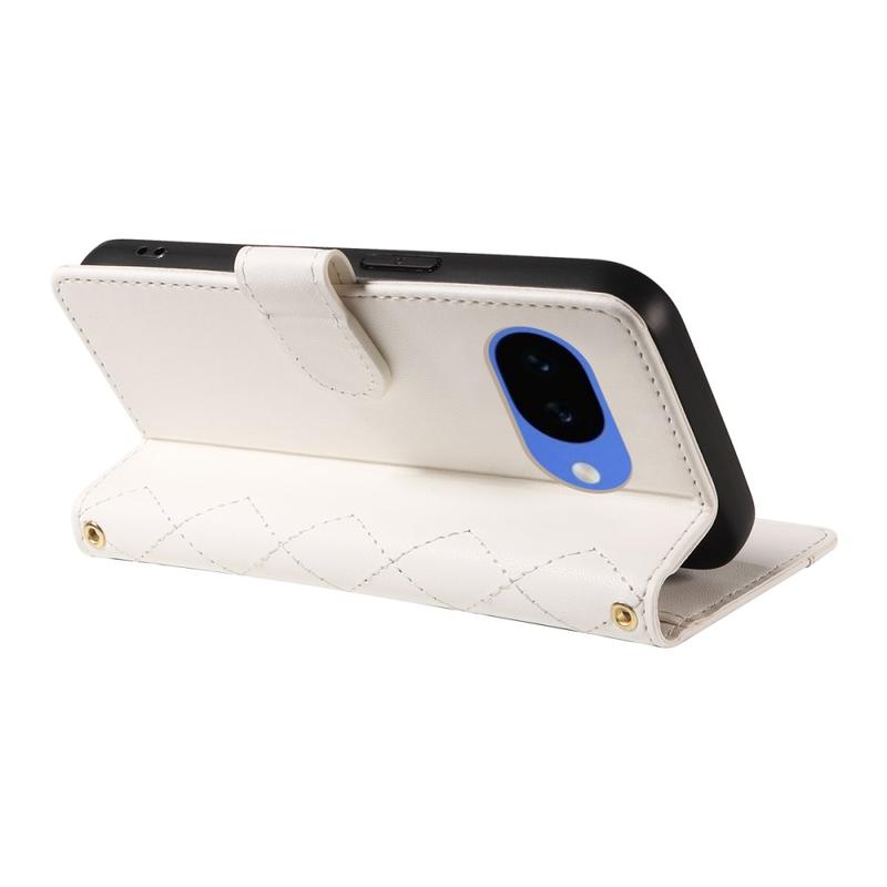 • Luxus Gesteppte Wallet Hülle mit Schulter & Handgelenk Strap für Google Pixel 10a - Rhombus-Muster Schutzhülle