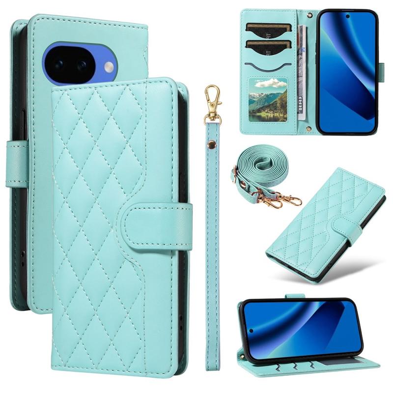 • Luxus Gesteppte Wallet Hülle mit Schulter & Handgelenk Strap für Google Pixel 10a - Rhombus-Muster Schutzhülle