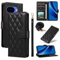 Luxus Gesteppte Wallet Hülle mit Schulter & Handgelenk Strap für Google Pixel 10a - Rhombus-Muster Schutzhülle
