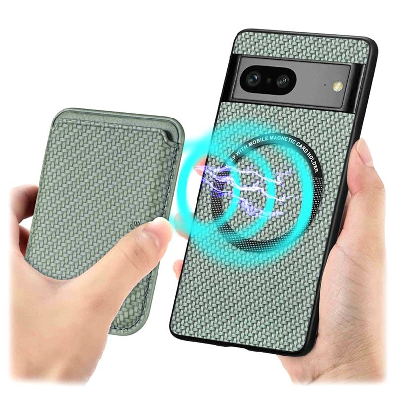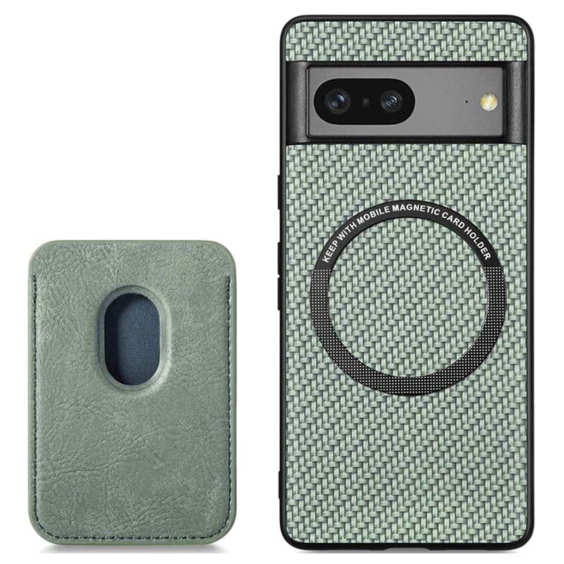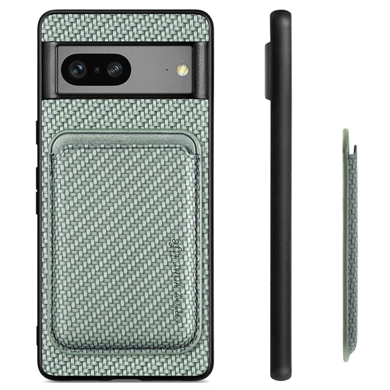 Google Pixel 7 Magnetisches Cover mit Kartensteckplatz - Karbonfaser - Grün
