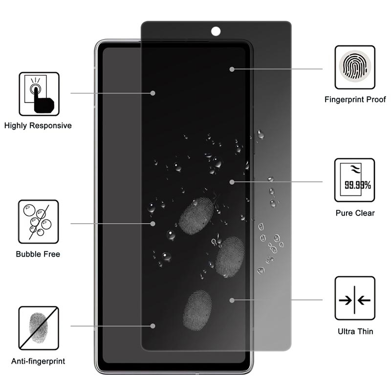 - Displayschutzfolie aus gehärtetem Glas für das Google Pixel 7a mit Sichtschutzfilter