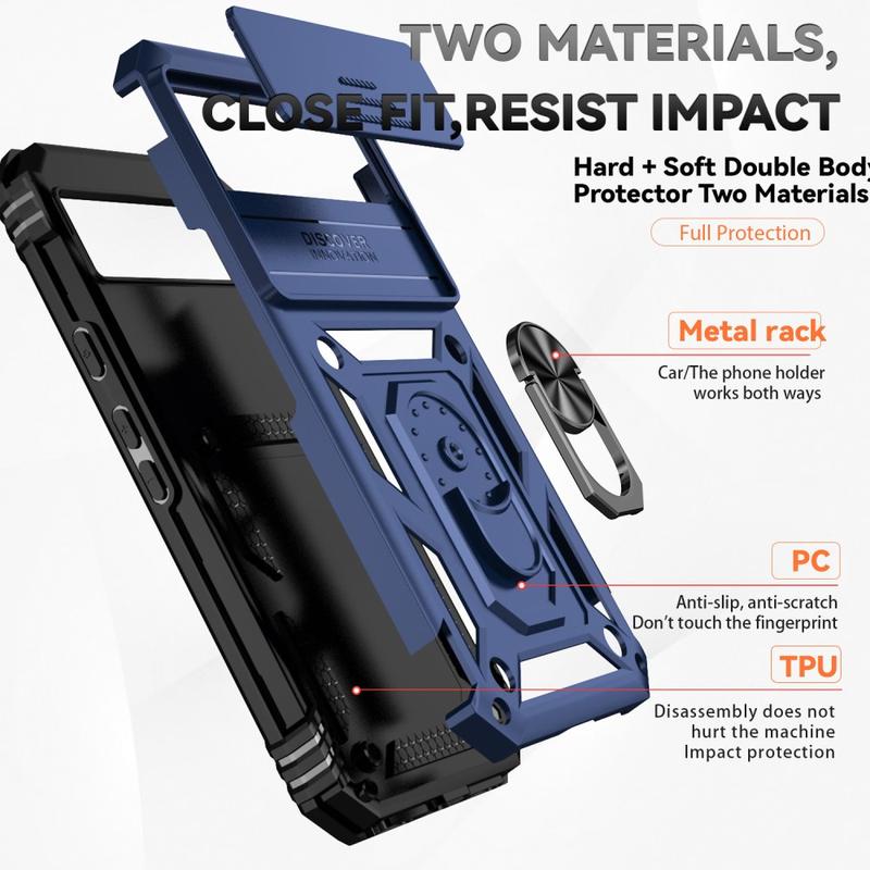 Diese Hülle für das Google Pixel 8a besteht aus hochwertigen Kunststoff-, TPU- und Metallmaterialien und ist auf Langlebigkeit und Schutz ausgelegt. Mit mehreren Funktionen schützt es Ihr Google Pixel 8a perfekt und sorgt dank des Drehrings auf der Rückseite auch für ein angenehmes Bedienen und Ansehen.