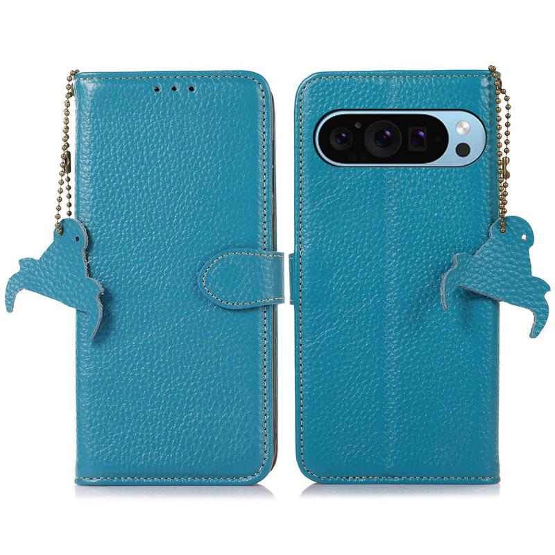 Google Pixel 9/9 Pro Lederhülle mit Geldbörse mit RFID - Blau