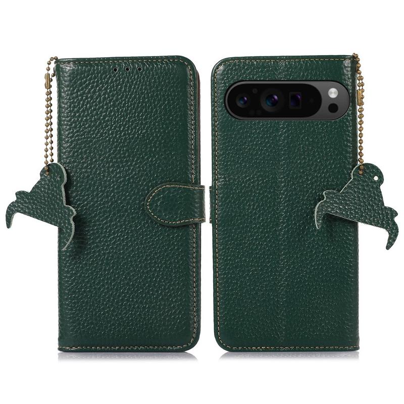 Google Pixel 9 Pro XL Lederhülle mit Geldbörse mit RFID - Grün