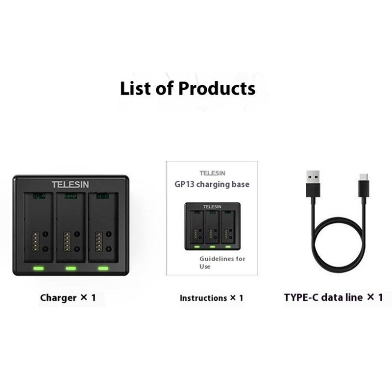 - 1 × TELESIN S0-BCG-1 Dreifach-Kanal-Ladegerät