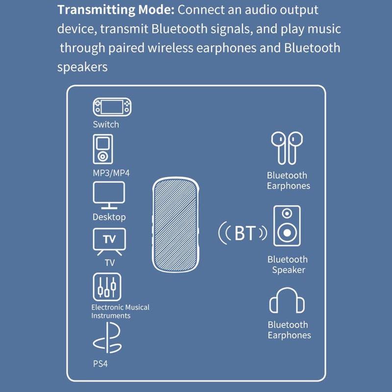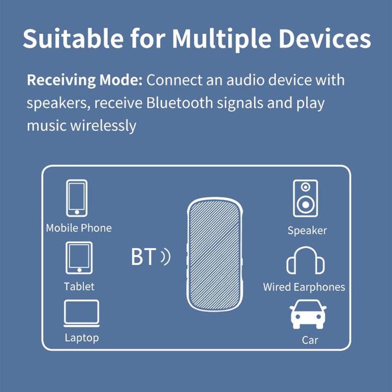 Bluetooth 5.2-Technologie: Verwendet die neueste Bluetooth 5.2-Version für nahtlose Konnektivität, so dass das Gerät mit Mobiltelefonen, MP3-Playern, Tablets usw. gekoppelt werden kann und alte Autoradios, Heimstereos oder 3,5-mm-Kopfhörer in drahtlose Systeme umwandelt