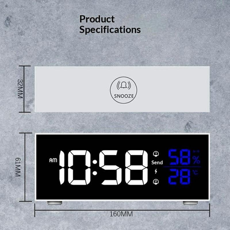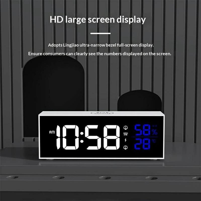Der multifunktionale Musikwecker GS-8812 kombiniert ein elegantes LED-Display im Spiegelstil mit praktischen Alltagsfunktionen wie zwei Weckzeiten, einstellbarer Helligkeit und Lautstärke sowie Echtzeit-Überwachung der Raumtemperatur und Luftfeuchtigkeit. Er wurde für Schlafzimmer, Büros und Studentenzimmer entwickelt und bietet 16 musikalische Klingeltöne für ein angenehmeres Aufwachen, Sprachsteuerung für eine einfache Bedienung und einen geräuschlosen Smart-Chip, der störende Tickgeräusche eliminiert. Mit einem integrierten 2200-mAh-Akku und einer Speicherfunktion ist er sowohl im Netzbetrieb als auch unterwegs zuverlässig einsetzbar.