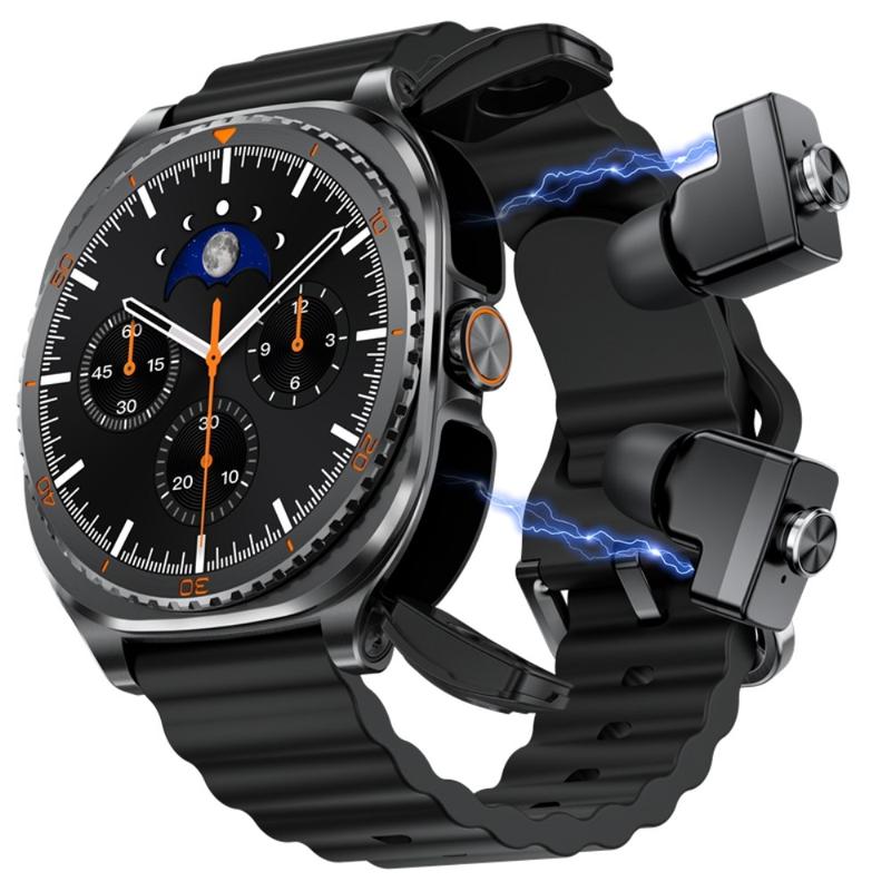 - 2-in-1-Smartwatch + TWS-Ohrhörer-Design für Musik, Anrufe und Fitness in einem Gerät