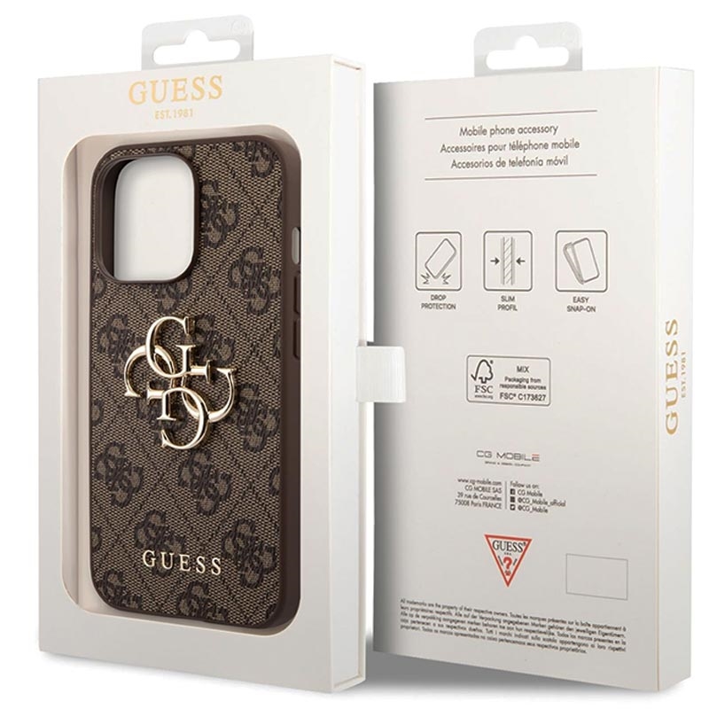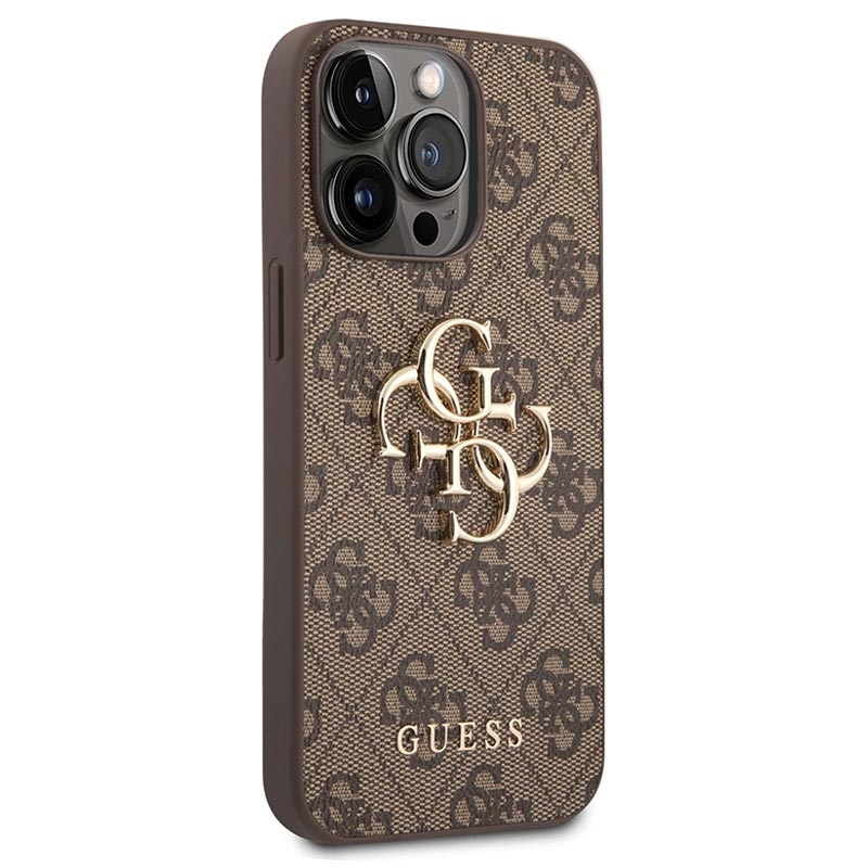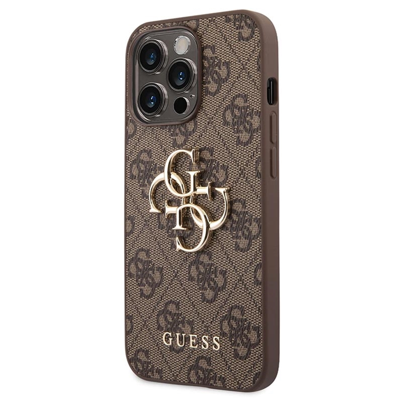 Guess 4G Big Metal Logo iPhone 14 Pro Max Hybrid Case - Braun