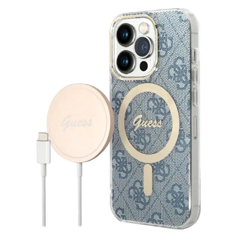 Guess 4G Edition Bundle Pack Hybrid Hülle & Magnetisch Drahtloses Ladegerät für iPhone 14 Pro - 20W