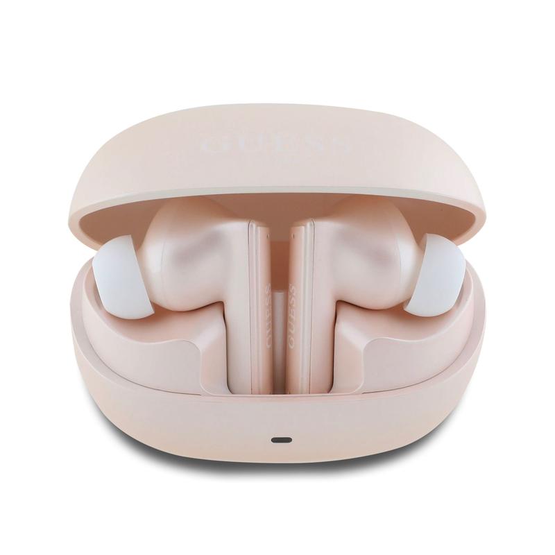 - Kompaktes Ladeetui: Das elegante Etui mit dem Guess-Logo schützt die Ohrhörer und sorgt dafür, dass sie unterwegs aufgeladen sind und problemlos in Taschen passen.