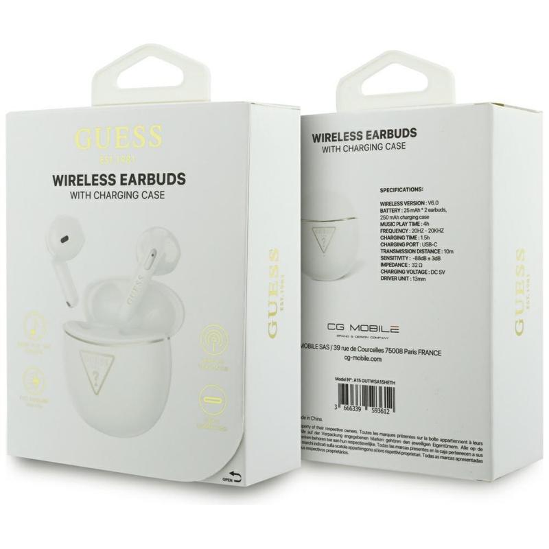 - True Wireless In-Ear-Design mit hochwertigem Guess Gold Line Triangle-Look