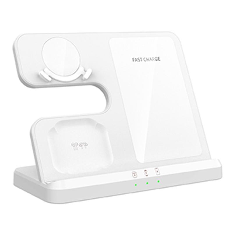 GY-Q10B 3-in-1-Schnellladepad Drahtlose Ladestation für Qi-Standard-Handy / Samsung Galaxy Watch / Kopfhörer - Weiß