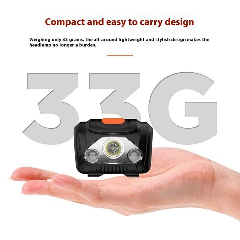 Mit Abmessungen von 60 × 45 × 32 mm ist die Stirnlampe klein, leicht und einfach zu tragen. Sie sitzt bequem auf dem Kopf, ohne Unbehagen zu verursachen, und eignet sich daher auch für längere Einsätze bei Outdoor-Aktivitäten.