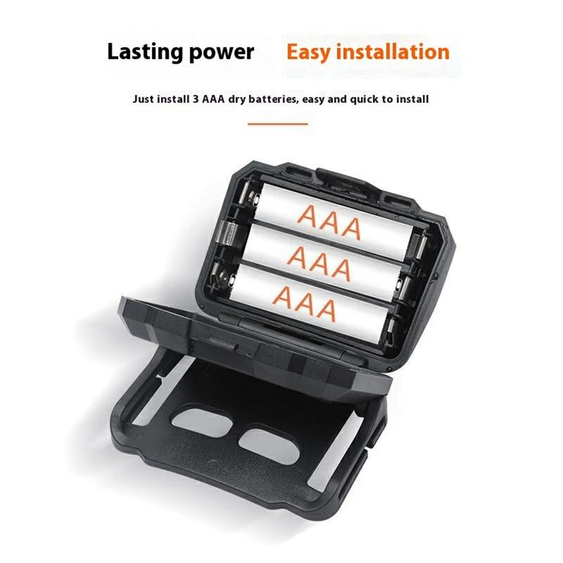 Die aus ABS- und PC-Materialien gefertigte Stirnlampe ist auf Langlebigkeit und Widerstandsfähigkeit ausgelegt. Die Kombination aus weißen XPE-LEDs und 2 × 2835 roten LEDs gewährleistet eine energieeffiziente Leistung mit zuverlässiger Helligkeit.