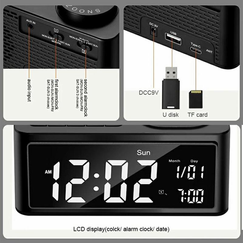 - Anpassbare Doppelalarme: Stellen Sie zwei separate Alarme ein, wobei Sie zwischen integrierten Klingeltönen, FM-Radio oder USB-Musikwiedergabe wählen können. Inklusive einer Weckeinstellung nur für Wochentage für maßgeschneiderten Komfort.