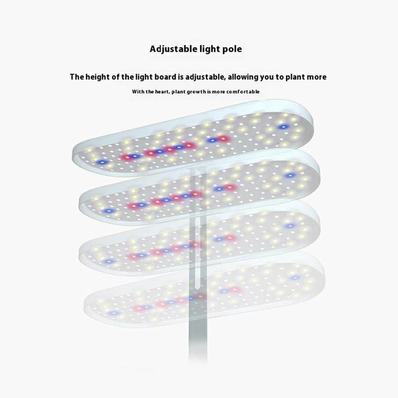 - Verstellbare Höhe: Der Beleuchtungsabschnitt der Lampe kann auf verschiedene Höhen eingestellt werden, um verschiedene Pflanzengrößen und Wachstumsstadien zu berücksichtigen und die Lichtabsorption zu optimieren.