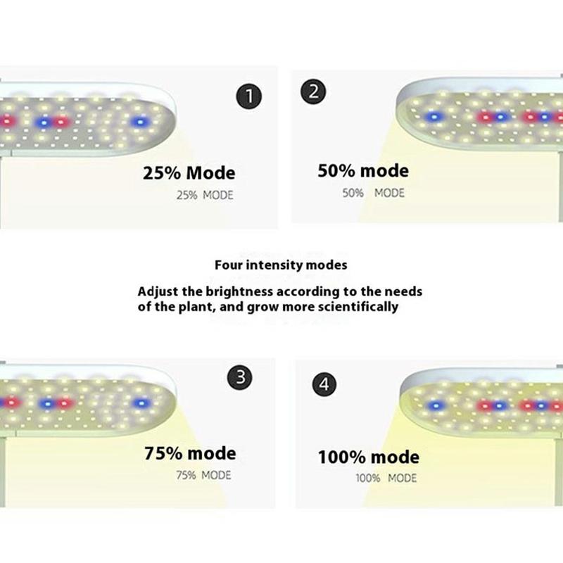 - 4 dimmbare Stufen: Wählen Sie zwischen 25 %, 50 %, 75 % oder 100 % Helligkeit, um den spezifischen Lichtbedürfnissen Ihrer Pflanzen in verschiedenen Wachstumsphasen gerecht zu werden.