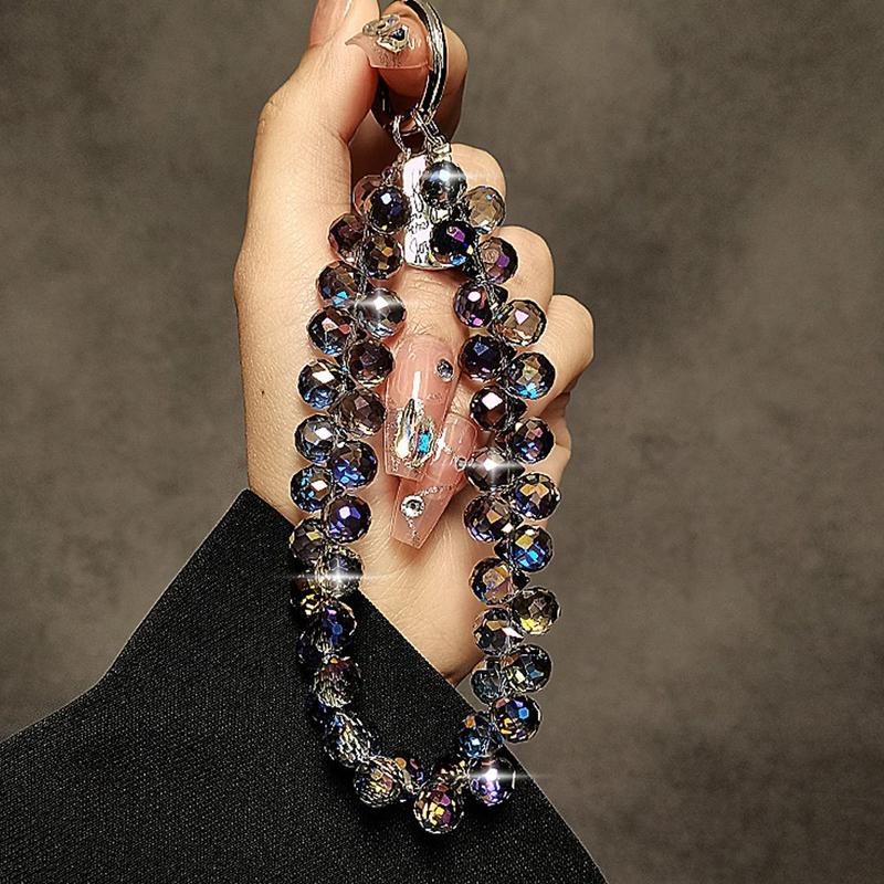 • 14cm lange Handy-Kette mit Kristallperlen - Handgelenkband mit Schlüsselanhänger und durchsichtiger Befestigungslasche