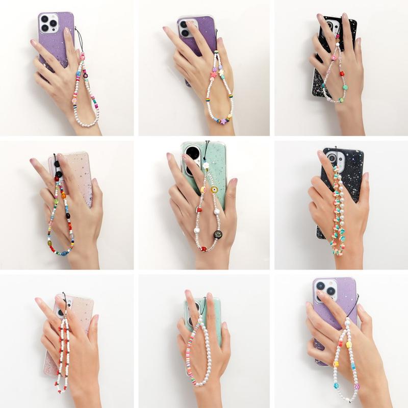 Verleihen Sie Ihrem Handy mit diesem 22cm langen Handy-Anhänger aus Perlen ein verspieltes und stilvolles Detail. Er ist sowohl als dekorativer Anhänger als auch als praktischer Handgelenkriemen konzipiert und kombiniert Kunstperlen mit bunten, flachen Harzperlen zu einem frischen, vom Regenbogen inspirierten Look, der gut zu verschiedenen Handyhüllen und Alltagsoutfits passt.
