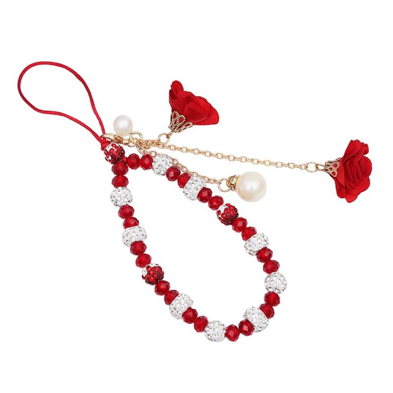 18,7 cm langes Handy-Band mit Kristallperlen und Rosenanhängern - Handgelenkband, Handkette, Handy-Accessoire