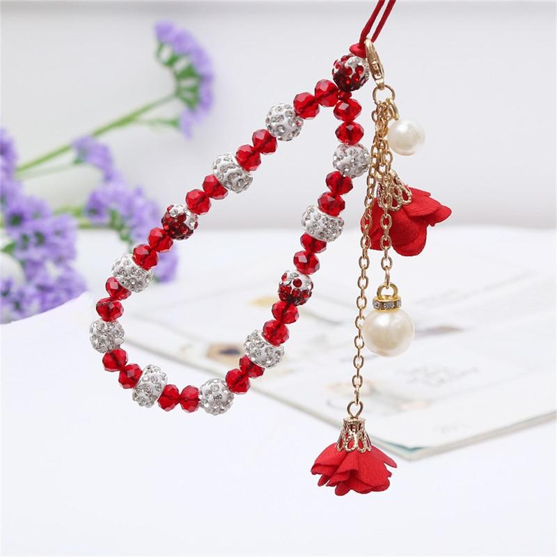 Verleihen Sie Ihrem Handy mit diesem 18,7 cm langen Handy-Anhänger mit Kristallperlen ein elegantes Detail. Er ist sowohl als dekoratives Accessoire als auch als praktische Handschlaufe konzipiert und kombiniert Perlen im Kristall-Look, Metallakzente im Strass-Look, Rosenanhänger und einen Anhänger aus Kunstperlen für einen raffinierten Alltagslook.