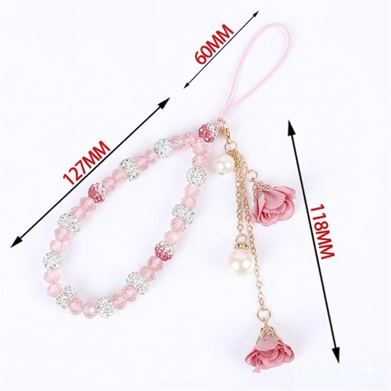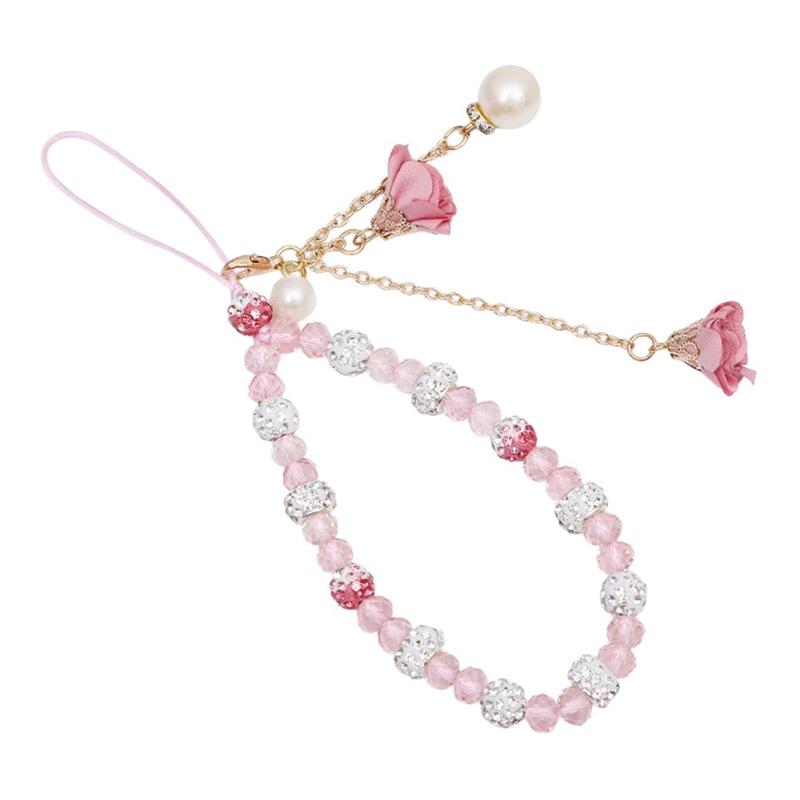 18,7 cm langes Handy-Band mit Kristallperlen und Rosenanhängern - Handgelenkband, Handkette, Handy-Accessoire