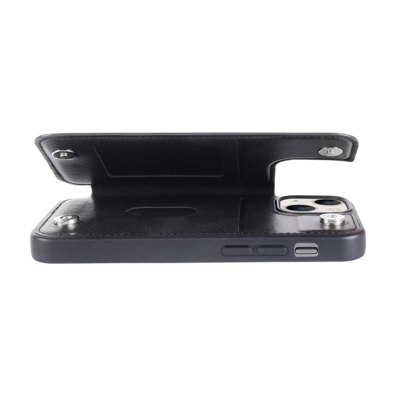 • HANMAN Mika Series For iPhone 14 Magnetic Closure Card Slots Case PU Leather Coated TPU Anti-drop Phone Cover PU leather coated TPU phone case, wear-resistant and anti-scratch Back card slots for carrying your essential credit cards/ID card Magnetic buttons closure keeps inner cards safe Easy access to charging ports, speakers and other functional interfaces Keep the backside of the phone from scratch and bump Hassle-free install and easy removal