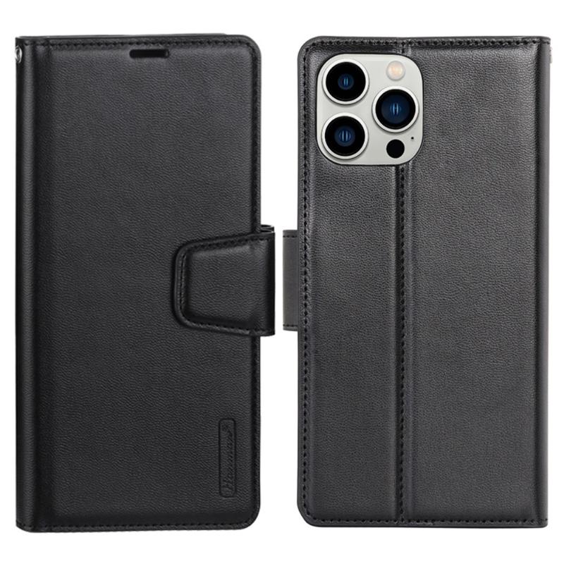HANMAN Mill Series for iPhone 14 Pro Max Wallet Magnetic Phone Cover Stand PU Leather Anti-scratch Flip Phone Case