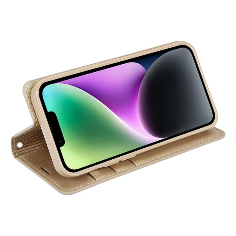 HANMAN Minor Series Wallet Phone Case for iPhone 14, PU Leather + TPU Foldable Stand Magnetic Auto-absorbed Cover