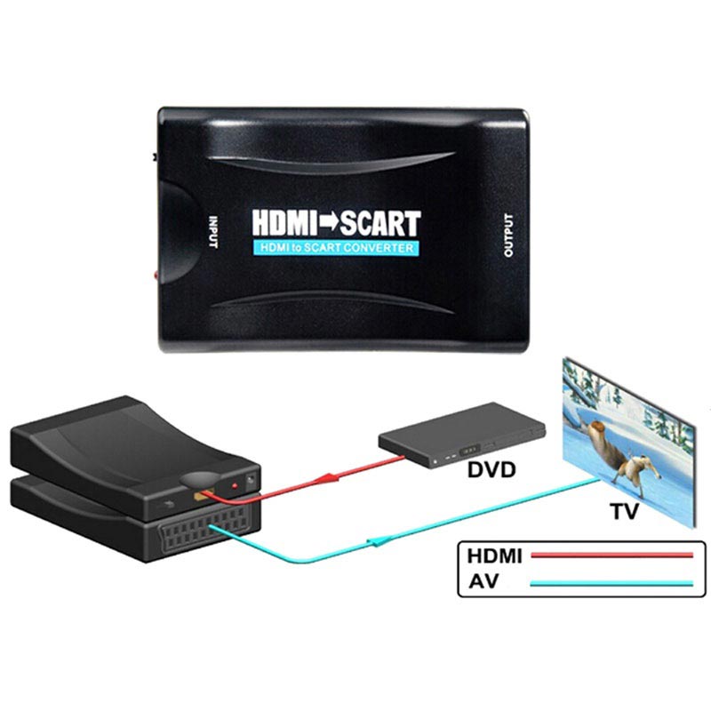 Konvertieren Sie das digitale HDMI-Signal in ein analoges SCART-Signal und übertragen Sie mit diesem AV-Adapter Ihre Fotos und Videos auf dem Fernsehgerät. Der Adapter unterstützt NTSC- und PAL-Standard-TV-Formatausgänge. Es ist kompatibel mit HDMI 1.4.