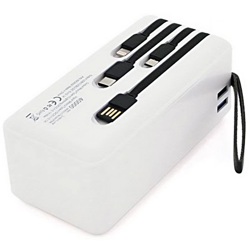 - Eingebaute Kabel - Enthält MicroUSB-, USB-C-, Lightning- und USB-A-Anschlüsse für direktes Aufladen.
