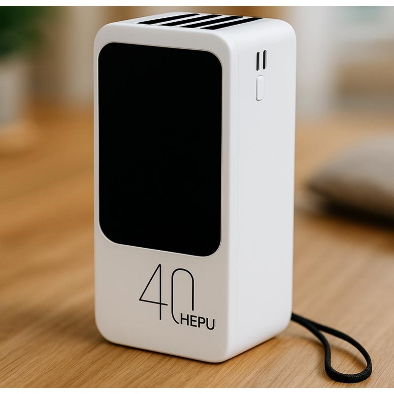 Hepu XL HP210 40000mAh Powerbank - Multi-Port Schnellladung mit integrierten USB-C/Lightning/USB-A/MicroUSB Kabeln und Ladeanzeige