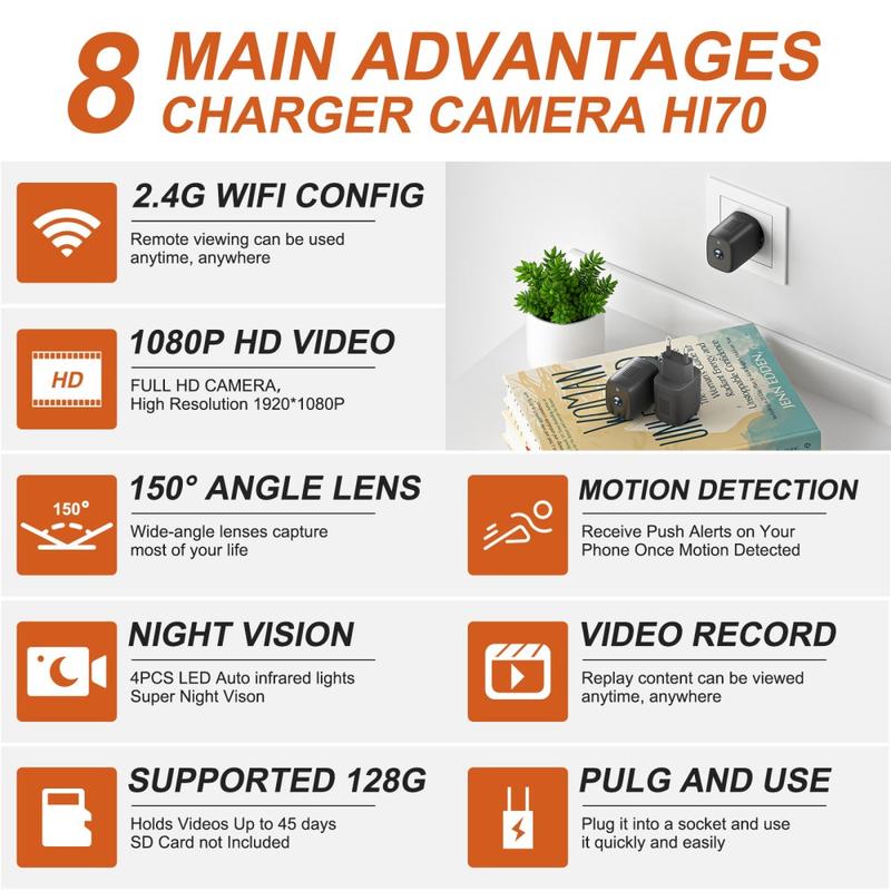 HI70 Wandladegerät Form Nachtsicht Bewegungserkennung WiFi Remote Mini Kamera